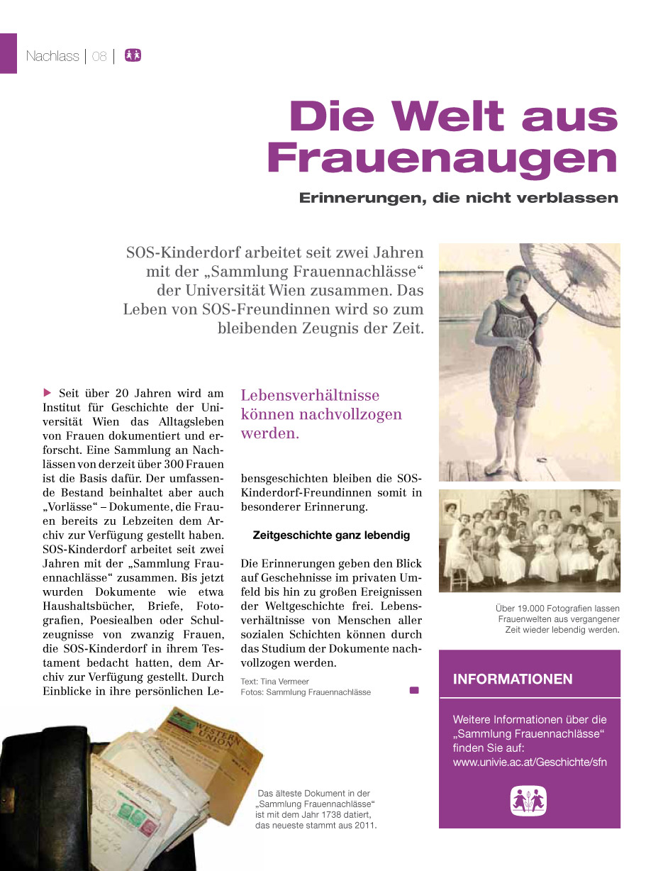 Das SOS-Kinderdorf arbeitet seit zwei Jahren mit der "Sammlung Frauennachlässe" der Universität Wien zusammen.
